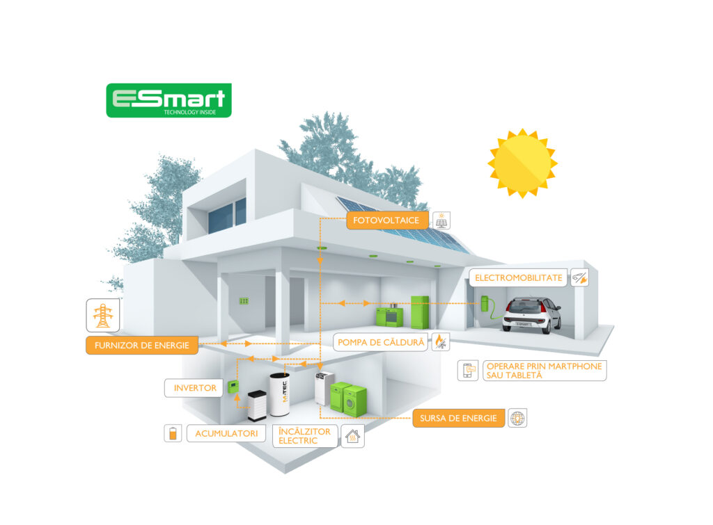 Tehnologia E-Smart îți reglează producția și consumul energiei în locuință, făcându-le și vizibile.